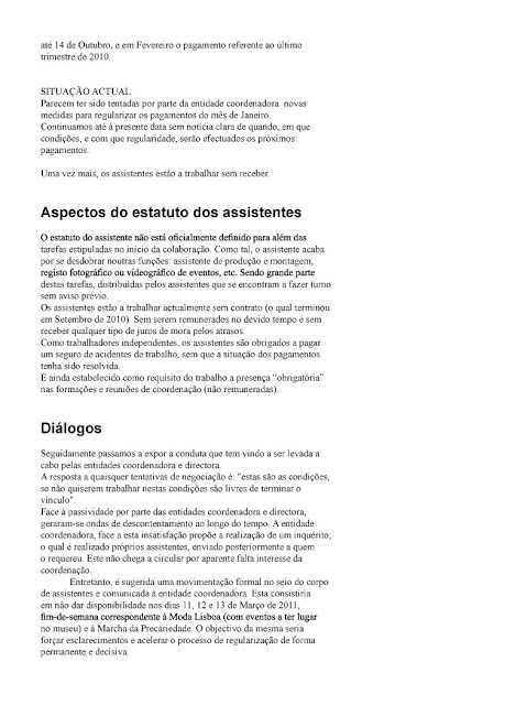 a entidade directora do MUDE optou por constituir uma equipa de assistentes que valorizasse o projecto e prestasse um serviço proactivo de qualidade. No entanto, nunca considerou as questões relativas ao seu pagamento. A direcção insiste em manter esta equipa sem assegurar as devidas e justas condições para o desempenho do seu trabalho.